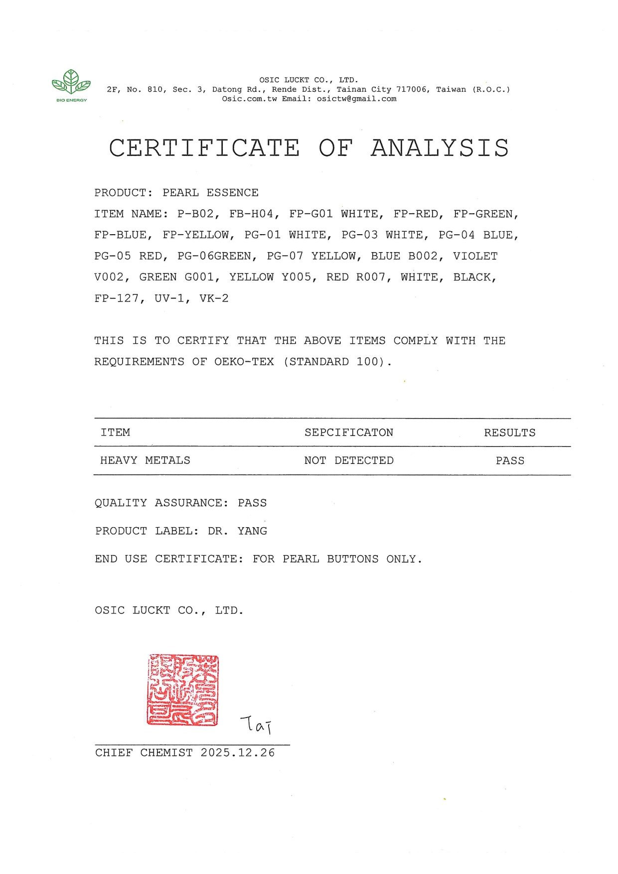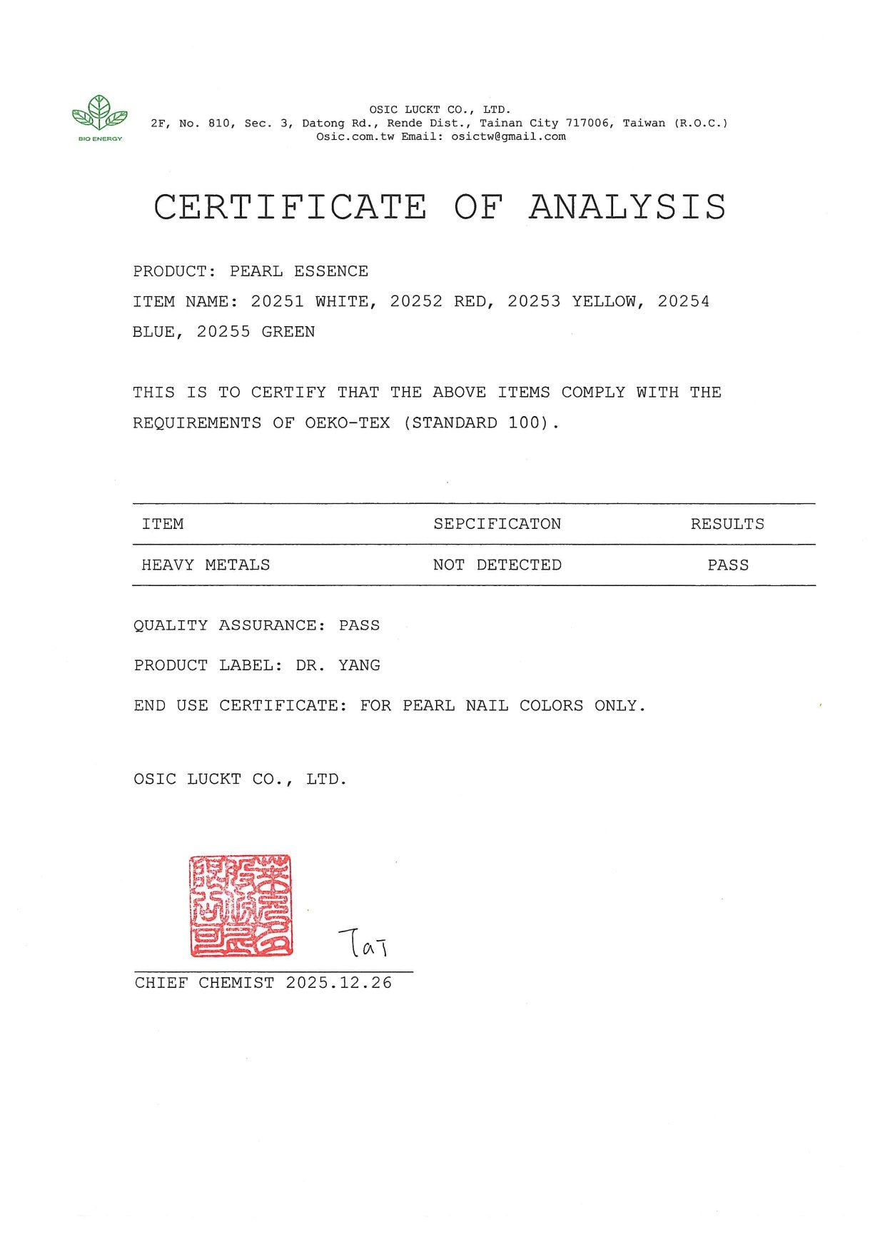 DR. YANG CHEMICAL, SINCE 1976